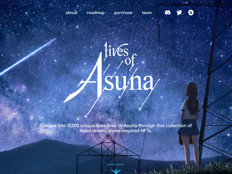 Lives of Asuna is a collection conceived and designed by ZumiDraws that explores the many lives of our titular character as she exists across the vast multiverse. Totalling 10,000, each Asuna NFT is a unique combination of traits inspired by the rich world of anime, ranging from sci-fi and fantasy to slice-of-life